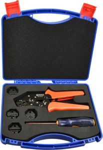 Комплектація:Інструмент SN-0725 (ізольовані наконечники типів RV та SV 0,5 – 2,5 мм2)., Змінні матриці інструментів SN-02 (02 – неізольовані наконечники 0,25-2,5 мм2), SN-02B (2B – автомобільні штекери 0,25-1,5 мм2), SN-02WF (2W – ізольовані наконечники типу HT 0,14-2,5 мм2), SN-06WF (SH06WF – ізольовані наконечники типу HT 0,25-6,0 мм2)., Викрутка хрестова 5:75мм.
