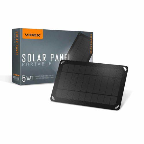 Легкий портативний сонячний зарядний пристрій VIDEX F505U 5W, який може перетворювати сонячне світло на електрику для негайного виробництва відновлюваної енергії. Він може заряджати різноманітні пристрої, такі як мобільний телефон, планшет, павербанк тощо.
