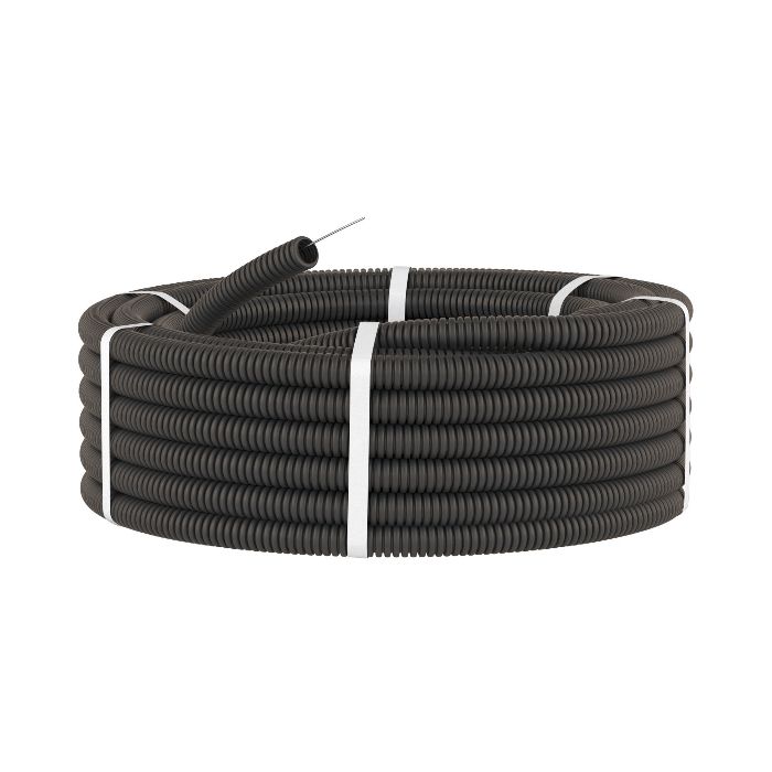 Труба гофрована гнучка ПВТ D20мм легка з протяжкою (бухта-100 м) чорна, БДК