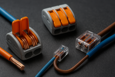 Клеми для з'єднання проводів WAGO — це інноваційні самозажимні з'єднувачі, які дозволяють швидко та безпечно підключати провідники без пайки, гвинтів чи спеціальних інструментів. Такі клеми забезпечують стабільний контакт, економію часу та довговічність в умовах монтажу будь-якої складності — від домашніх електромереж до промислових щитів.